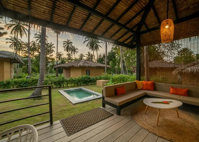 Suan Residence - Exotic And Contemporary Bungalows With Private Pool チャロクルムホテルはSail Rock Diversから歩いてたった6分で,メイ ハ-ディ ビ-チから3.7キロメ-トルの場所にあります. ゲストハウスは無料の専用駐車場もあります.